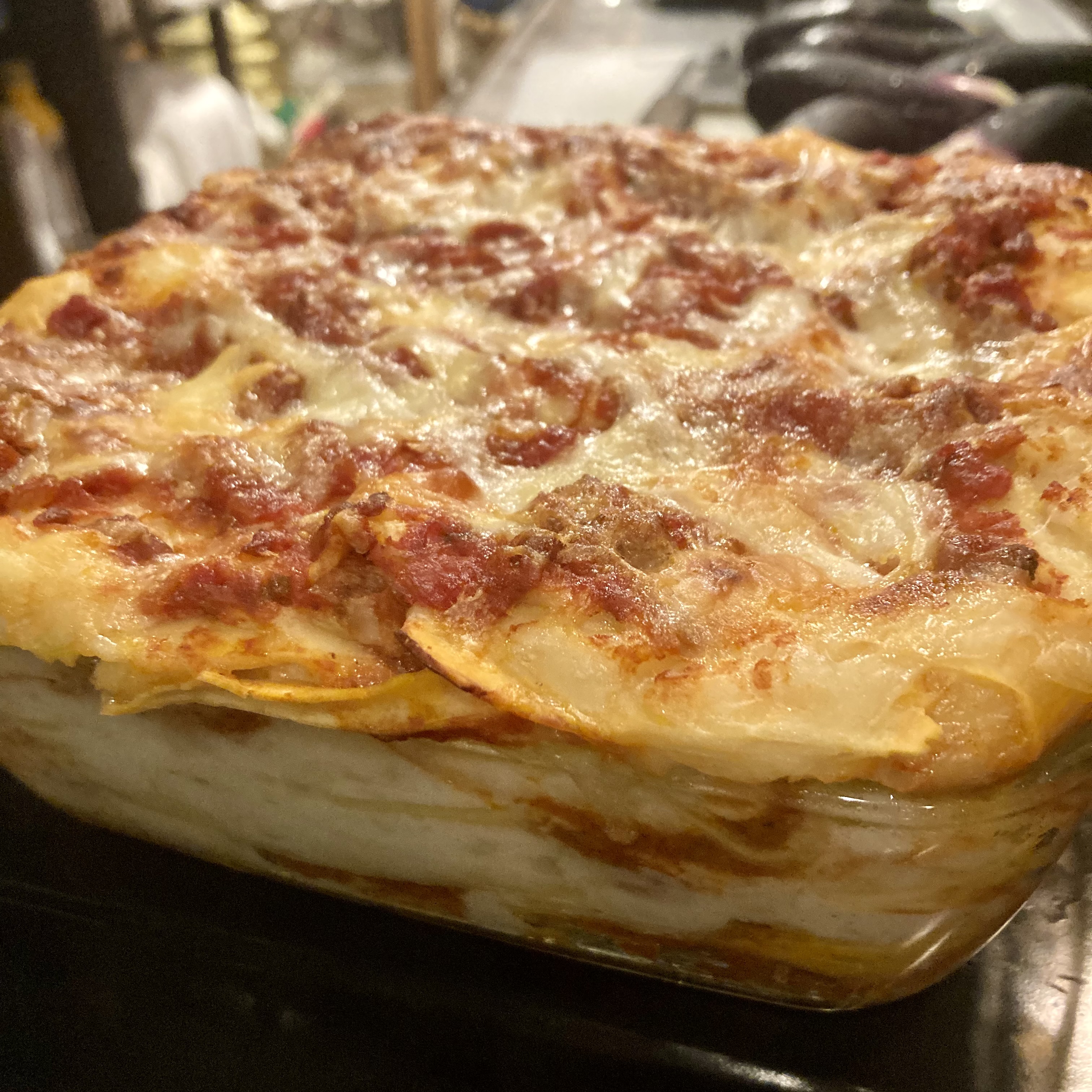 イタリアマンマの味。とよく言われますが、家庭でこの手間を惜しまないとはイタリアの母は優しいですね。ミートソース、ホワイトソース、ラザニア、チーズを6層に重ねて、ボリュームたっぷりとても美味しい、みんな大好きなはず。