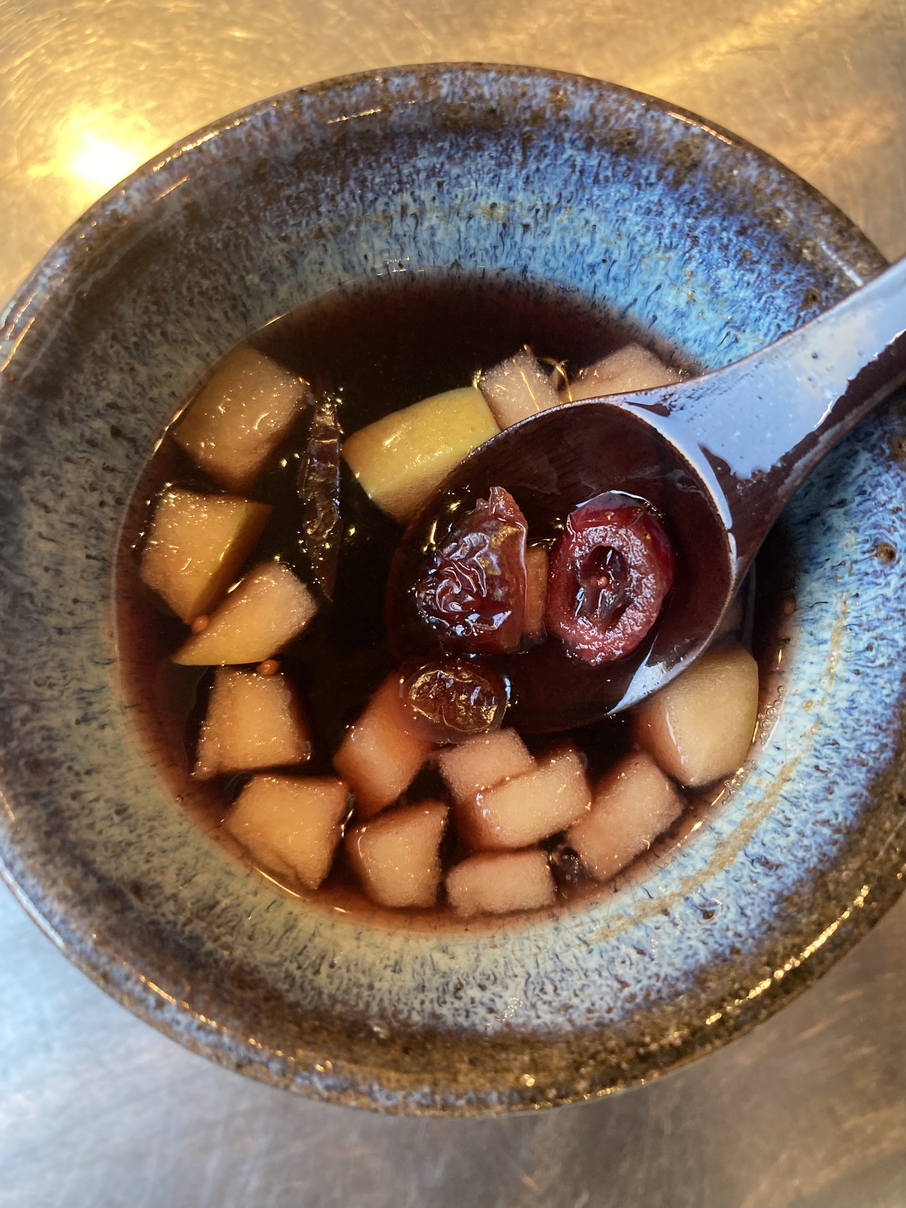 日本のほんのり甘い赤ワインに、リンゴ、クランベリー、微かにシナモン。
