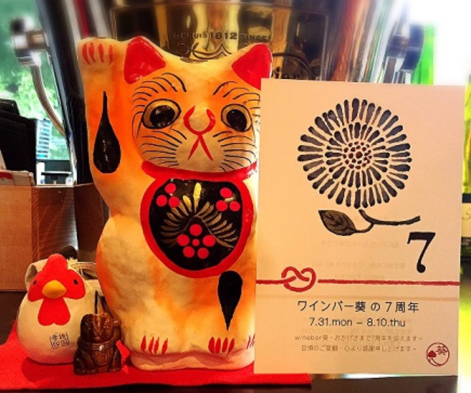 10日の営業で、無事7周年イベントが終了しました。 葵を開店した頃は、とにかく夢中で、正直なところ7周年の事なんて想像してなかったと思います。 そんなこの店が、無事かどうかはわかりませんが、何とか7周年を迎えることができたのは、これまで来店して頂いた皆様、お一人お一人のおかげです。本当に有難うございました。 「美味しいワインが飲みたいね」、「食べごろのチーズにワインを合わせたいね」なんてときに、「葵に行こう!」と思い出して、来店していただけるように頑張っていきたいと思います。 今後とも末永くお付き合いいただければ幸いです。 本当に有難うございました。 「WINE BAR 葵」一同 追伸 11日(金)~15日(火)まではお盆休みとなります。ご注意ください。