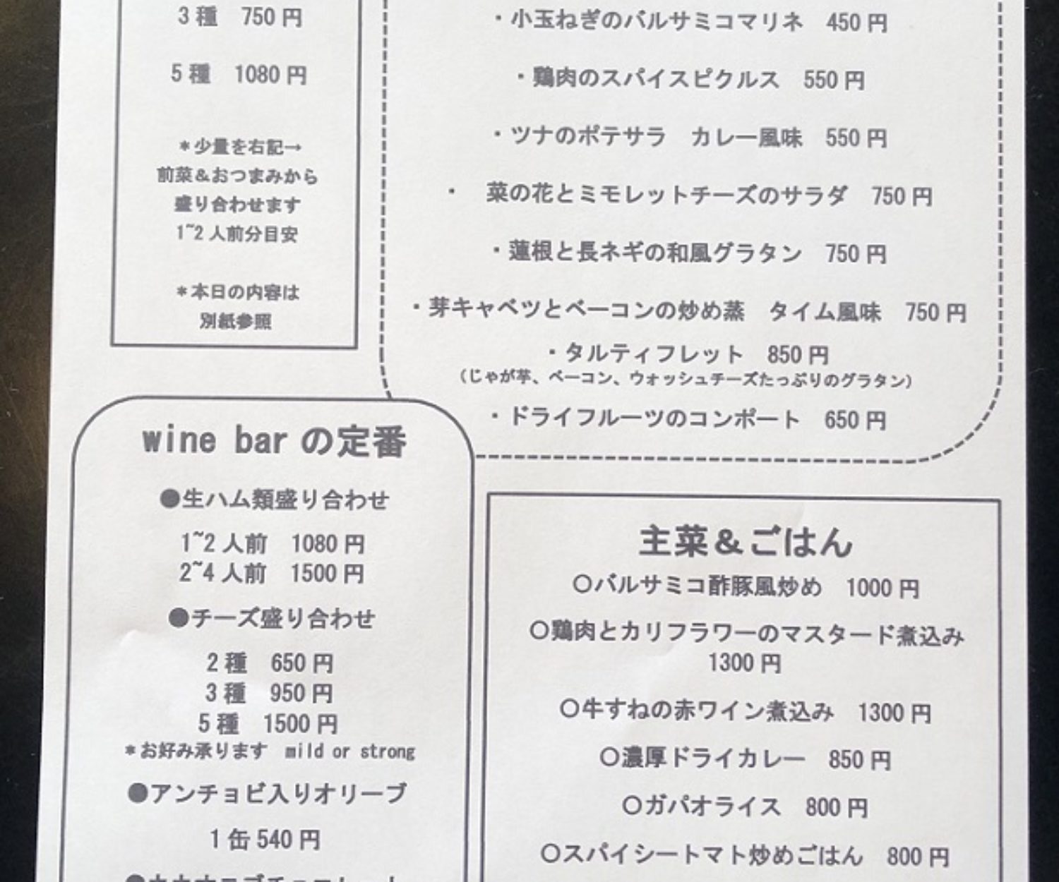 本日のワインバー葵