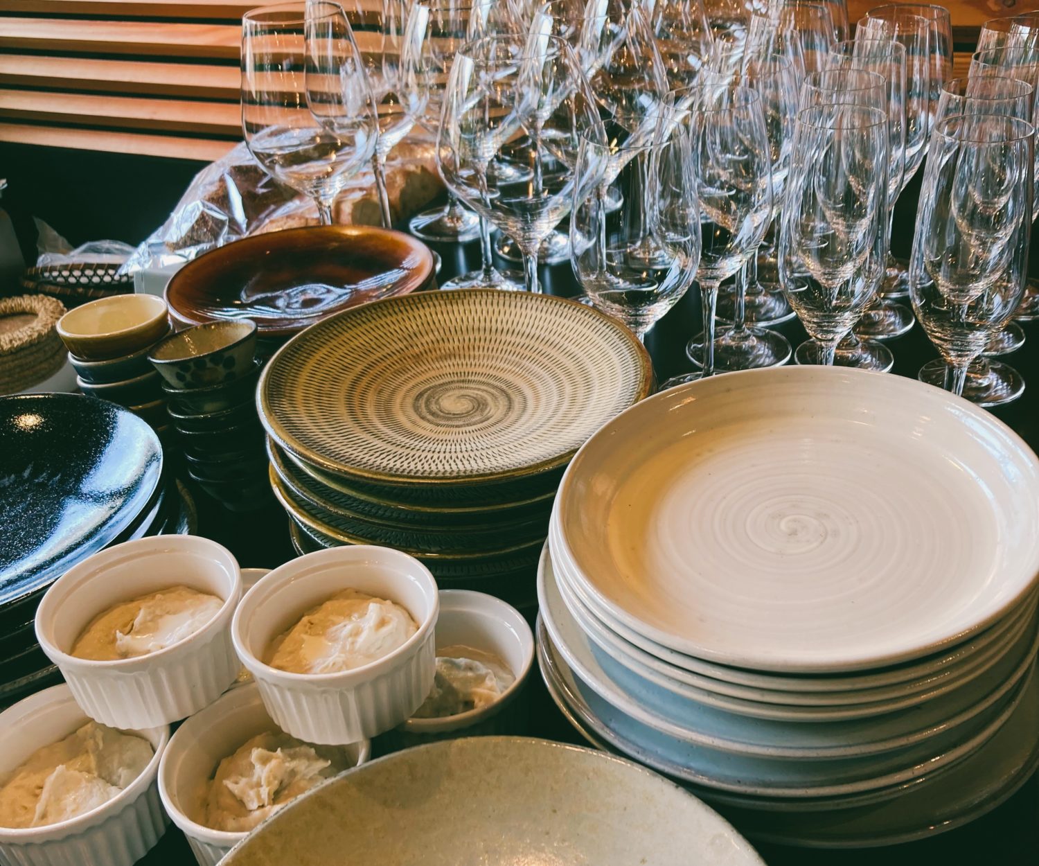 今日、8名さまのご予約があります。その他の席数がかなり少なくなるので、お手数ですがご来店の前にご一報いただけると助かります。 21時半過ぎくらいなら余裕が出てくると思います。 8名さまの接待の席、いつ以来でしょうか?。準備してのぞむとはいえ、久しぶりすぎて緊張しますね。 グラスもお皿もフル活用。緊張と同時に気持ちの良い高揚感、ハリがあります。 現状、5名さま以上のご来店にはコロナの陰性証明が必要ではありますが、こうした制約が徐々に少なくなってきていると、飲食店の立場から実感します。ウィズコロナってこうやって浸透して、、、