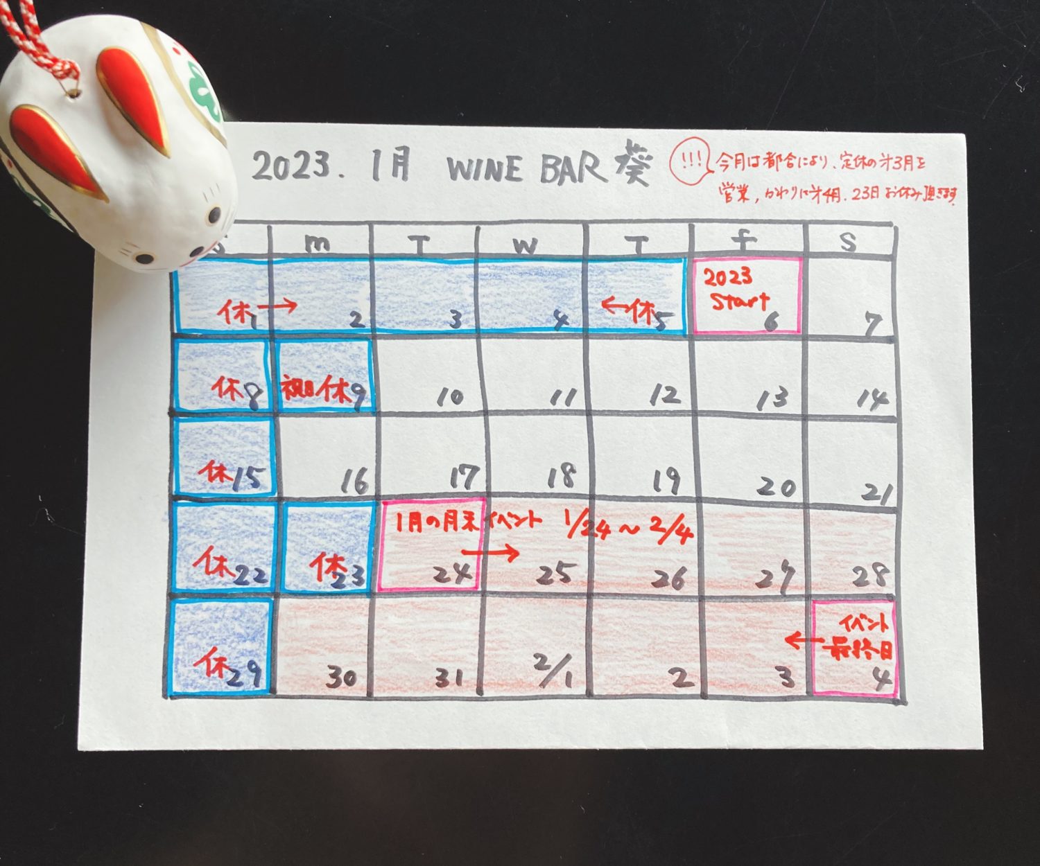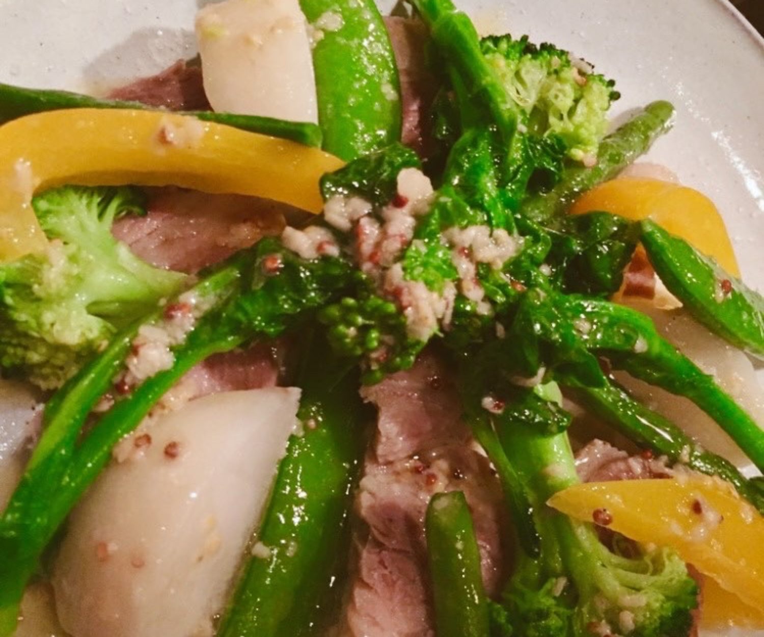 テイクアウトも新年スタートです。今年もぜひご利用ください。 年末年始の暴飲暴食?な胃を休めるべく、店内メニューもですが今回は全体的に優しいメニューとなっています。 「菜の花とミモレットチーズのサラダ」 緑とオレンジ、彩り鮮やかなサラダ。菜の花スナップえんどうとスライスしたミモレットを赤ワインビネガーメインのドレッシングで和えています。 「鶏肉チャーシュー 味噌たれ」 コクのある味噌だれで調味した鳥もも肉のチャーシュー。生姜が効いていて適度な脂でおつまみにぴったり。白でも赤でも合いそう。 「ナスとチョリソーの軽いトマト煮」 各種スパイスとハーブを混ぜ、、、